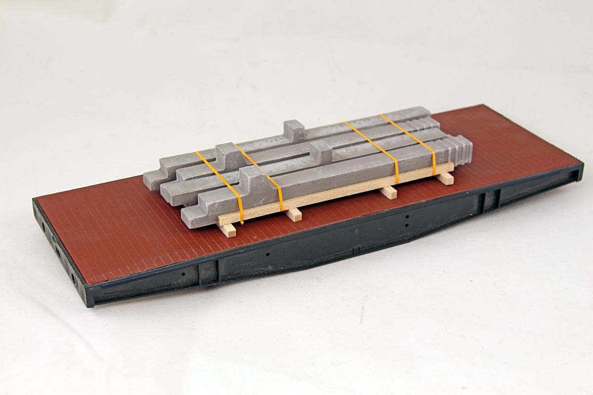 im Holzlagergestell verzurrt